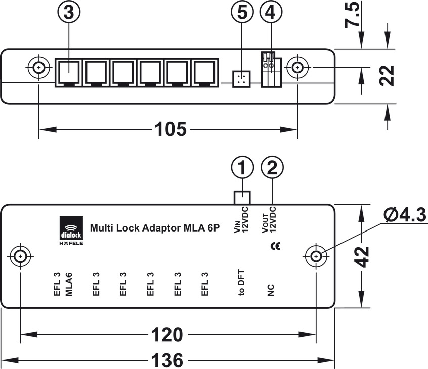 Hafele 237.59.032 Multi-Lock Adapter, Dialock, MLA 6, for EFL 3/3C, EFL 80, Separate Power Supply, Plastic, Gray, 1 Set