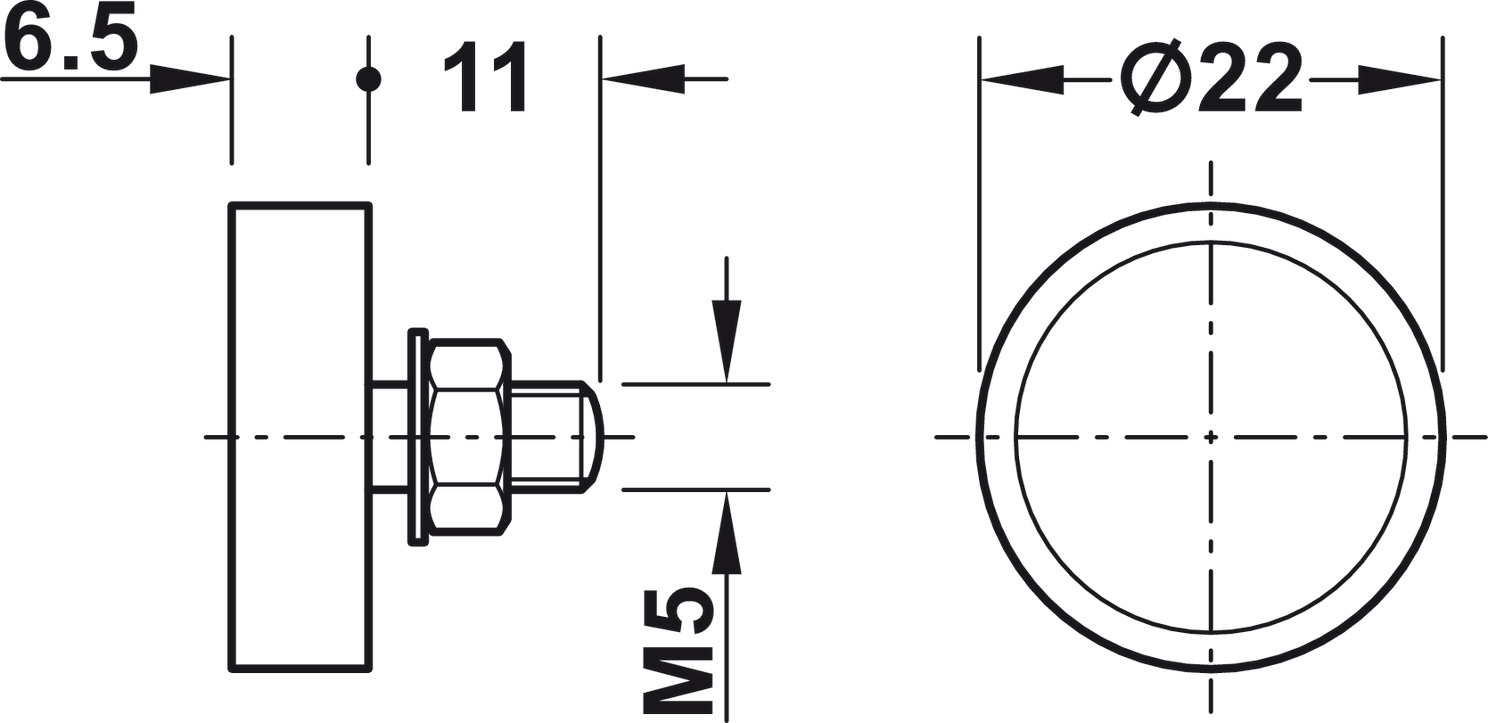 Hafele 246.96.008 Magnetic Catch, M5 Thread, Rigid Housing and Counterpiece, For Metal Cabinets, 6 lbs Pull Force, Steel
