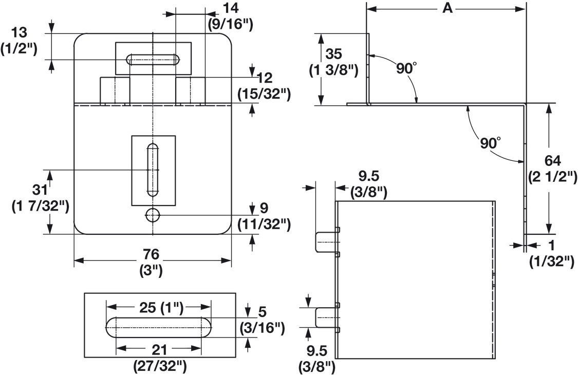 Dimension A: (3") 76 mm