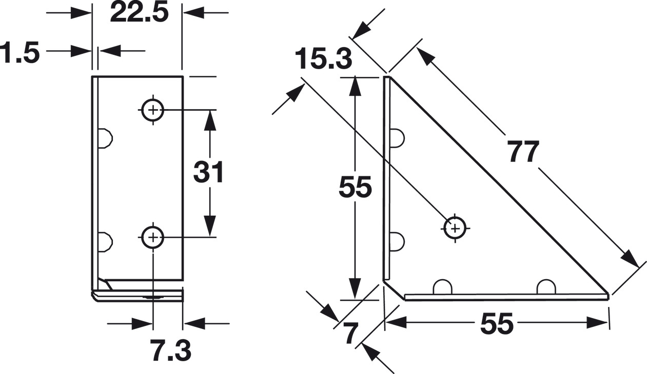 Hafele 260.34.005 Corner Brace, Uses Pan Head #9 Screws, 2 3/16" x 2 3/16", 7/8" Width, 1/16" Material Thickness, Steel, Unfinished