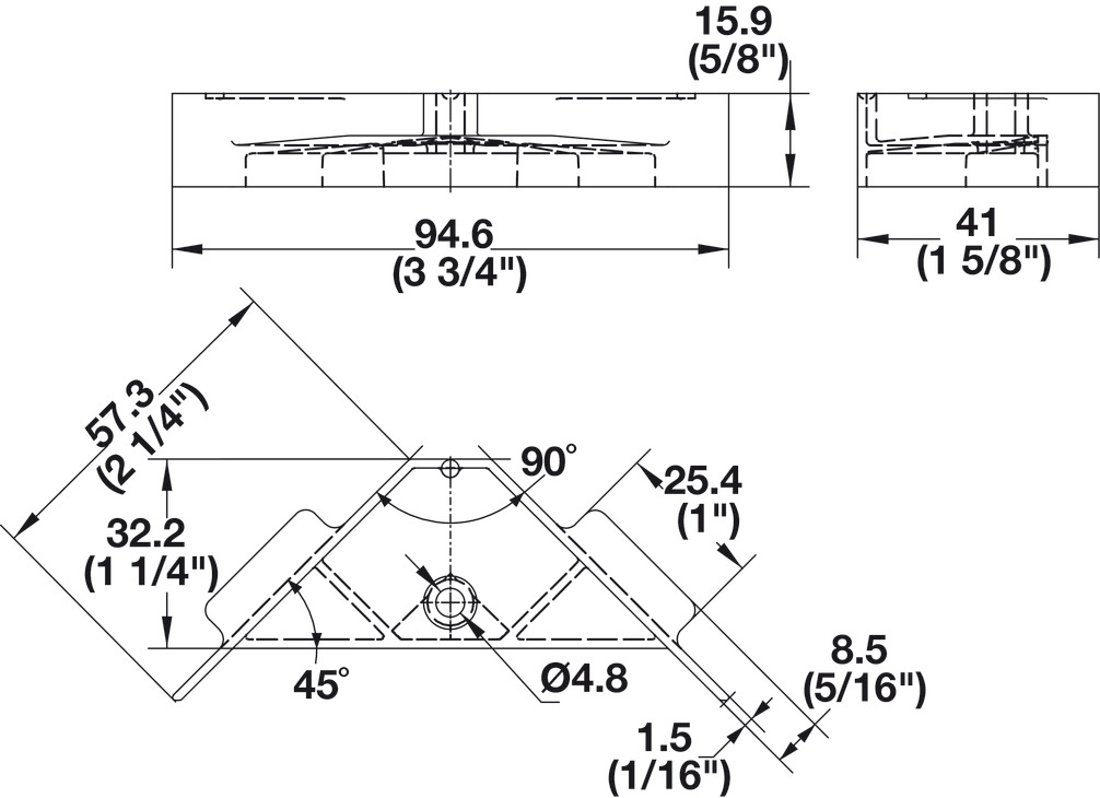 Hafele 260.44.411 Corner Bracket, with Reference Tabs, 2 1/4" x 2 1/4", 5/8" Width, 1/16" Material Thickness, Plastic, White