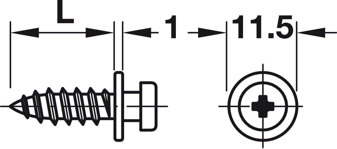 Hafele 262.47.987 Modular Screw, with Wood Screw Thread, Hole Ø4, length 16 mm, Steel