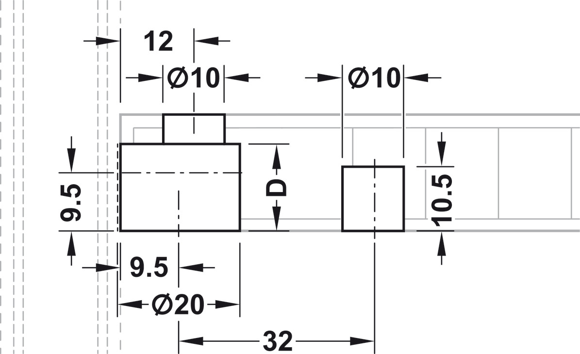 Hafele 263.16.705 Connector Housing, Rafix 20 System, with Dowel, With tightening element, For wood thickness 19 mm, Plastic, White