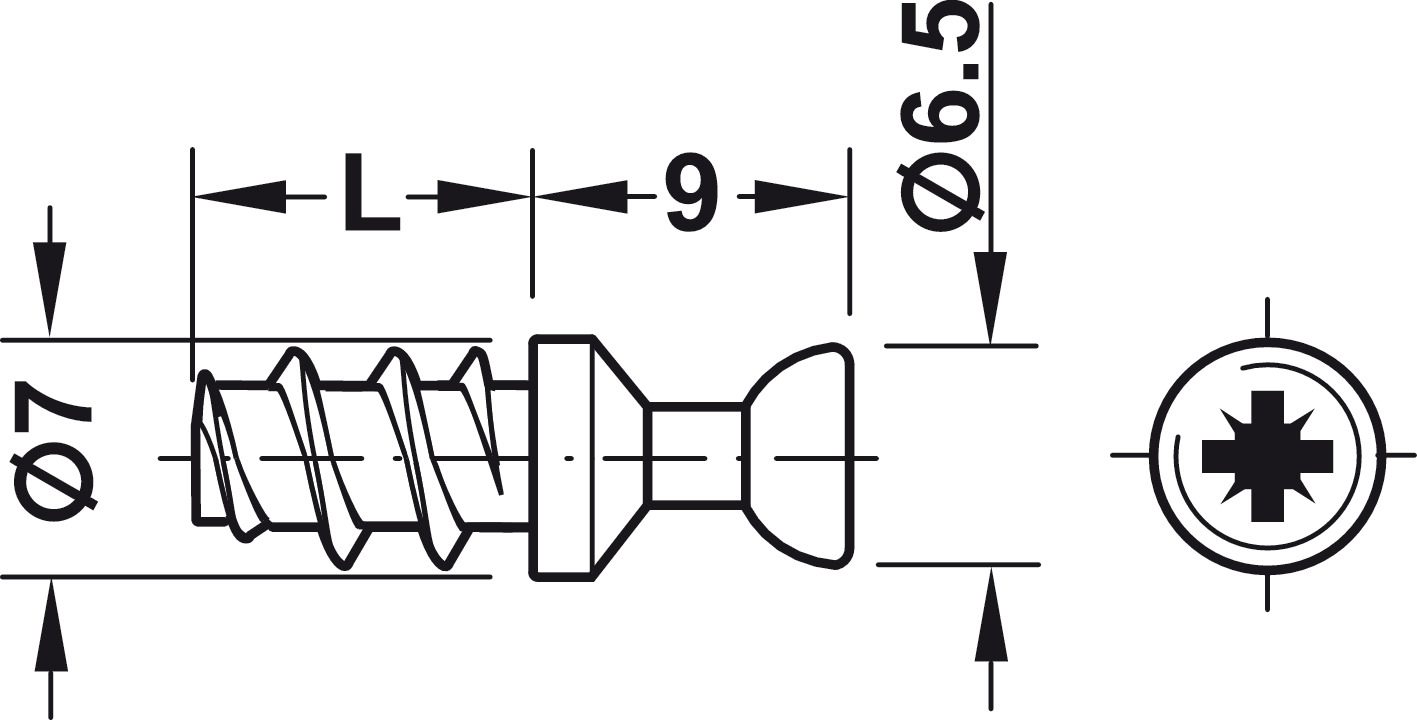 Hafele 263.20.131 Connecting Bolt, M20, 7.5 mm, PZ2 Cross Slot, thread length L: 7.5 mm, Bright