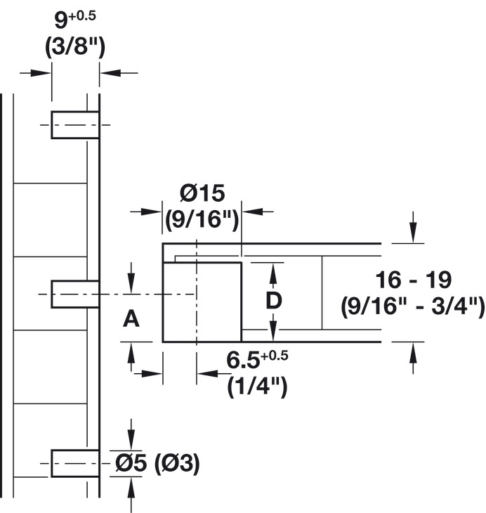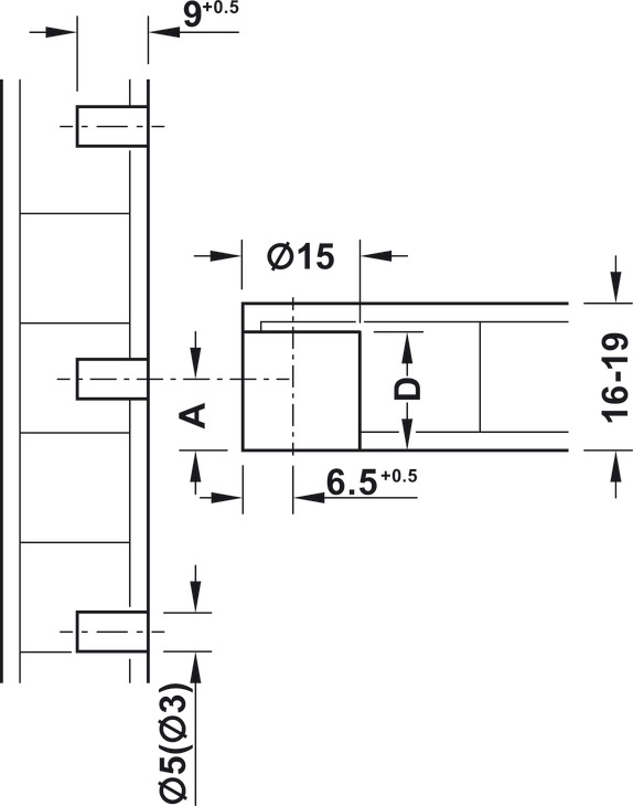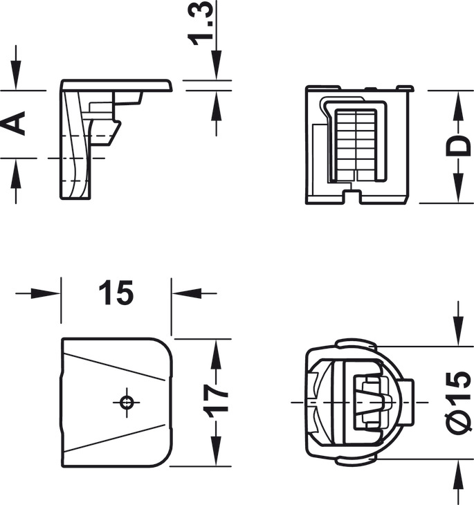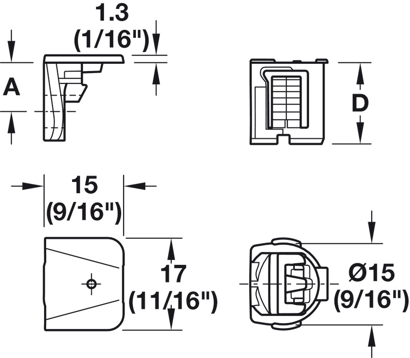 Hafele 263.73.611 Shelf Connector, Häfele Ixconnect Tab 15, for Plug Fitting into Drill Hole Ø1/5", for Wood Thickness 5/8", Nickel-Plated