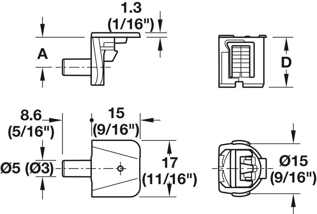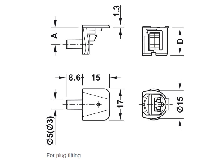 • Area of application: For shelves with thickness of 16–19 mm to additionally secure shelf against toppling increased stability in furniture when using the Tab 15 for screw fixing