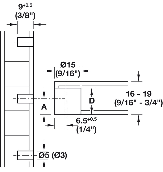 • Drill hole Ø: 15 mm