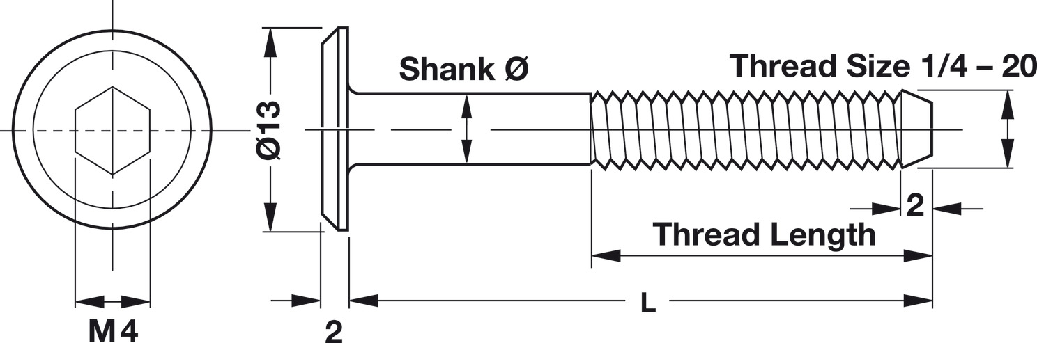 Version: Flat head Ø13 mm with M4 hexagon socket