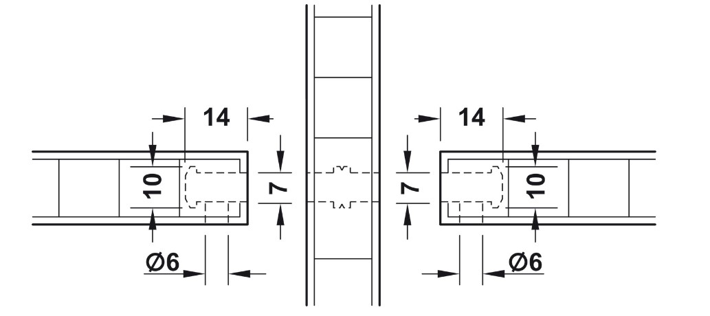 Drill 6 mm opening for tightening element and slide in the connector