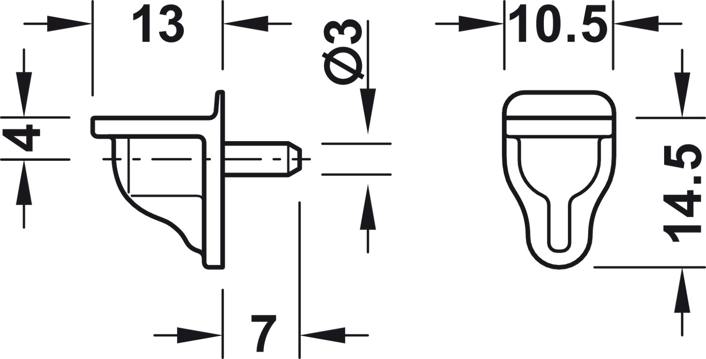 Hafele 282.12.403 Shelf Support, Ø1/8", for Wooden and Glass Shelves, 2/5" Depth, Transparent, Box of 100