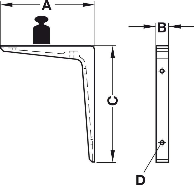 Installation reference: Load capacities are approximate figures and can change depending on application. These figures were determined by static testing - distributing the weight evenly over the surface, but not extending the length of the bracket.