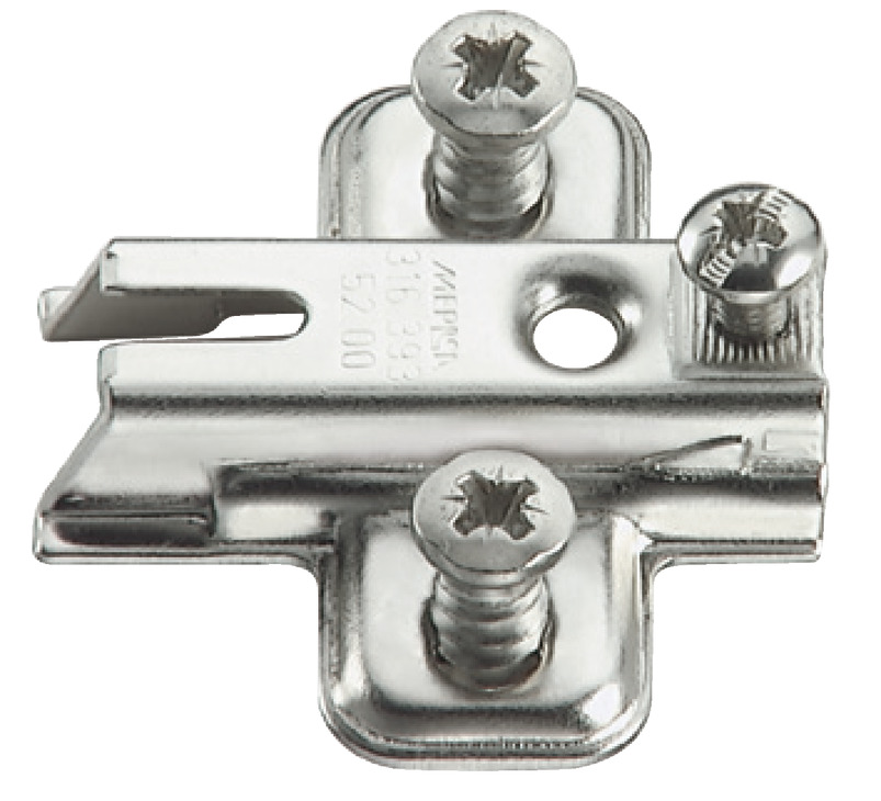 Hafele 323.84.704 Mounting Plate, Super Compact Cruciform, One Part Plate, for Grass Slide On System Hinges, 0" Height, Pre-Mounted Euro Screw Fixing, Pressed Steel
