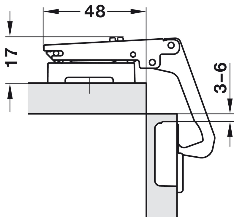 Installation: Door to cabinet for sliding on with Duomatic A mounting plates or with quick fixing system using Duomatic SM mounting plates