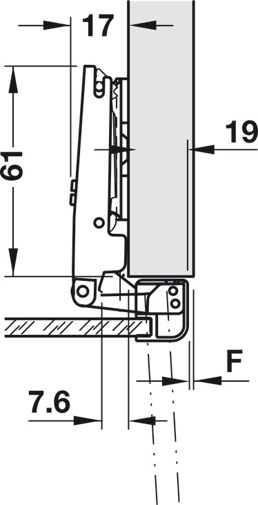 Developed for use with metal profiles (563.55.931, 563.55.031, 563.55.911). A Ø3.5 x 9.5 mm (#6 x 3/8") countersunk sheet metal screw to attach hinge to frame is recommended