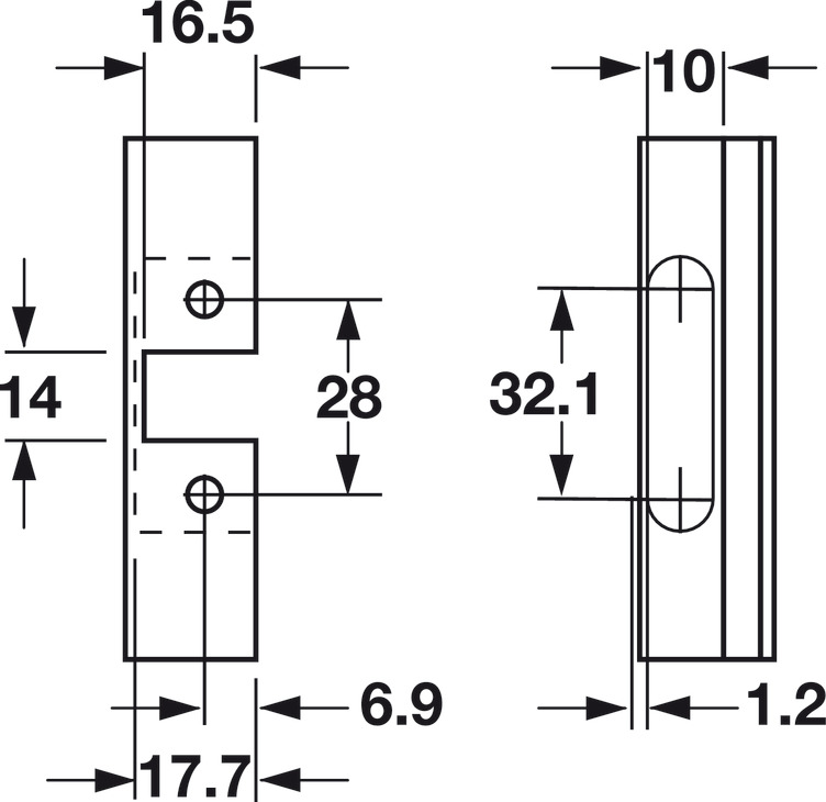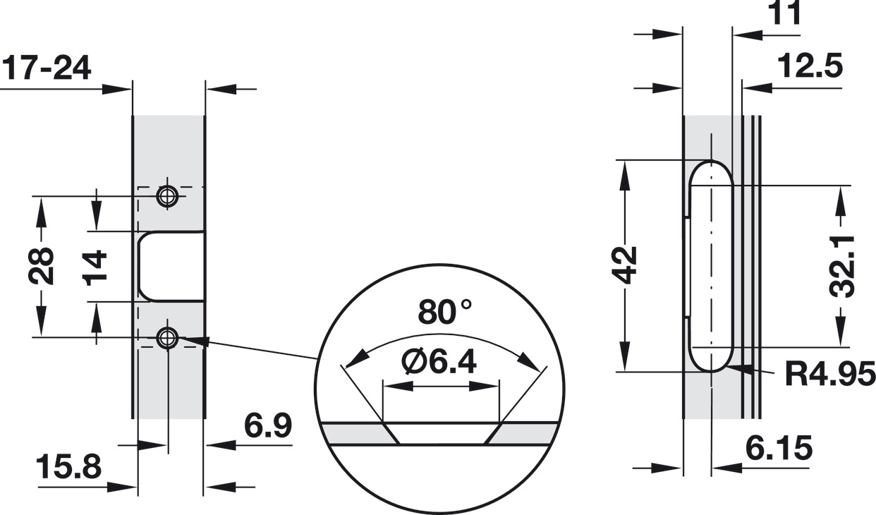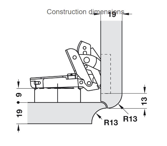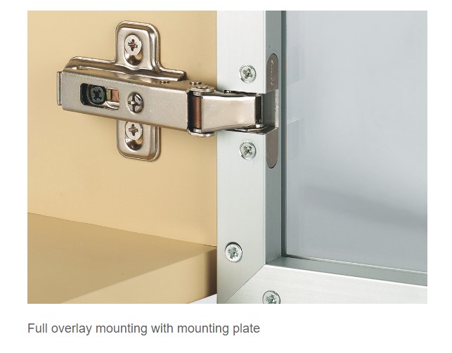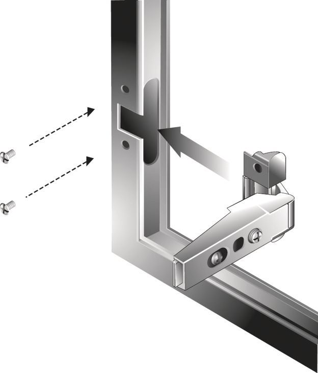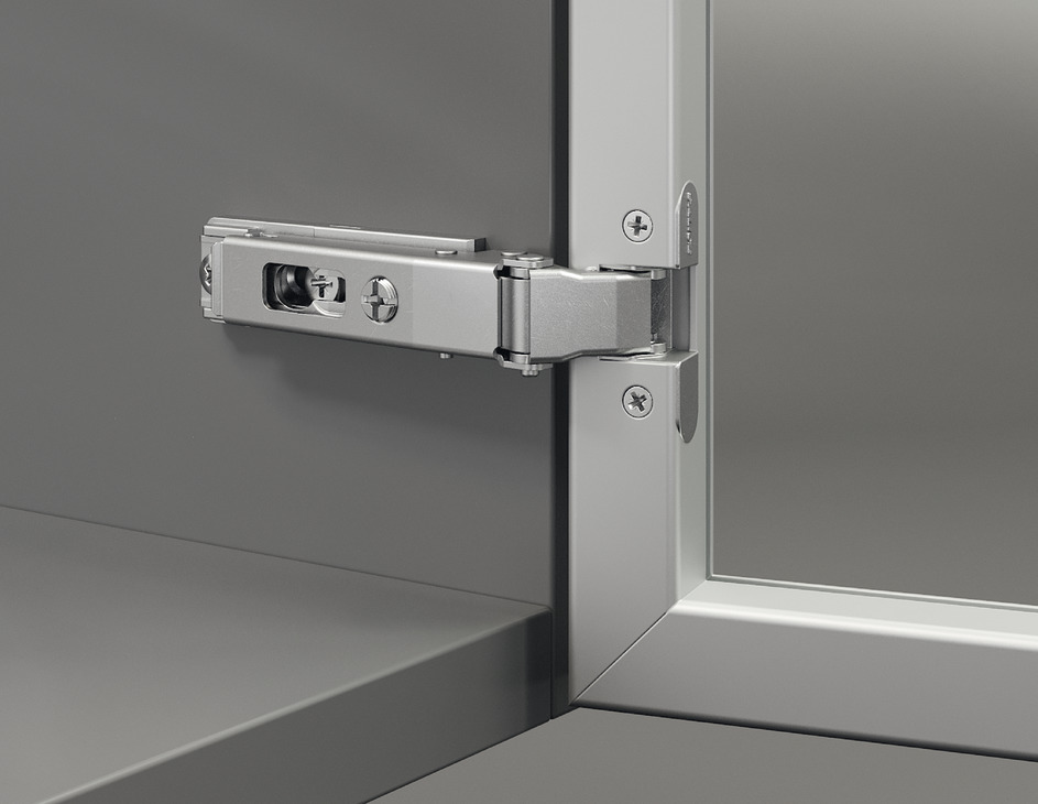 Developed for use with metal profiles (563.55.931, 563.55.031, 563.55.911). A Ø3.5 x 9.5 mm (#6 x 3/8") countersunk sheet metal screw to attach hinge to frame is recommended
