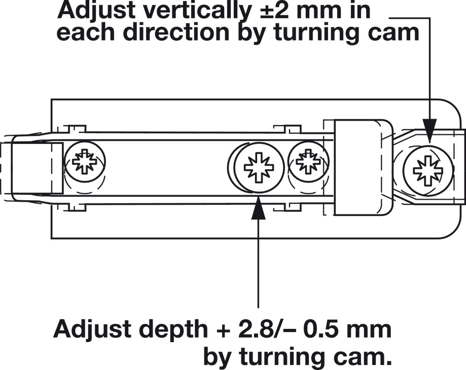 Depth adjustment: Via eccentric -0.5 mm to +2.8 mm