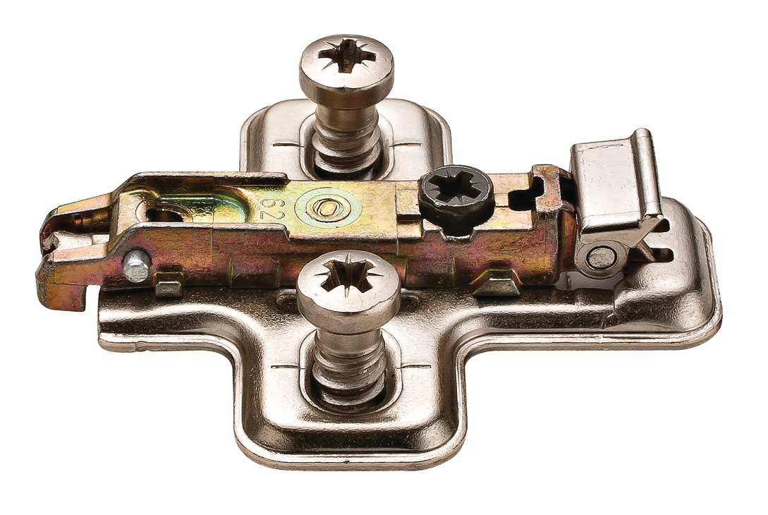 Hafele 329.74.512 Clip Mounting Plate, Salice, BAVGM29F/16, with quick fixing system, with Pre-Mounted Euro Screws, 1/13" Distance
