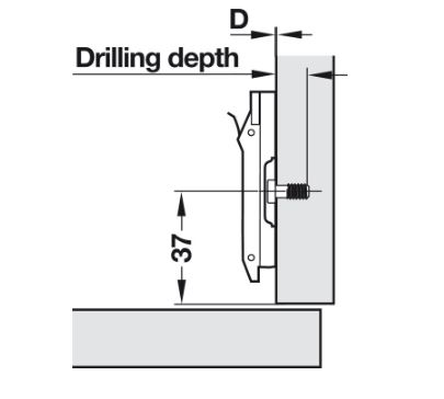 Depth adjustment: Via eccentric -0.5 mm to +2.8 mm