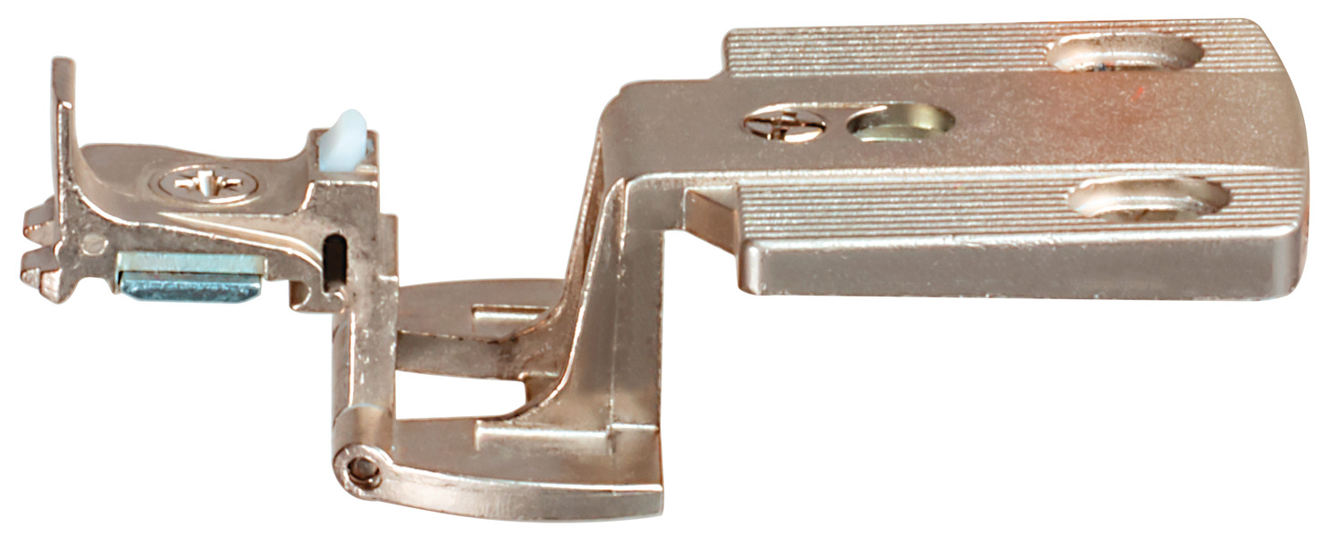 Hinge arm component available with pre-installed expanding dowels for 5 mm holes, or for screw attachment