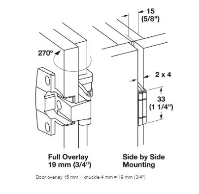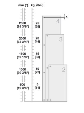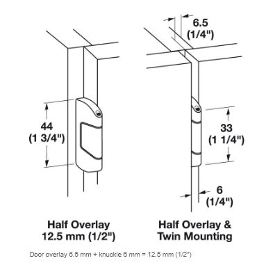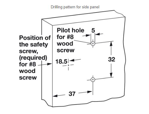 Recommended number of hinges: Door widths up to 600mm (23-3/8"); Door width should not exceed height
