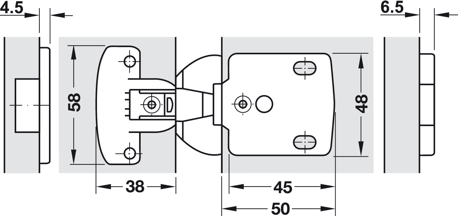 Single Pivot Institutional Hinge Cup, Aximat® 300, Grade 1, for 8 mm Holes, Dowel Mount: