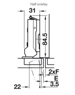 Hafele 348.36.532 Concealed Hinge, Grass Tiomos, Model F034139401228, 120° Opening Angle, Half Overlay, Self-close, Impresso Fitting