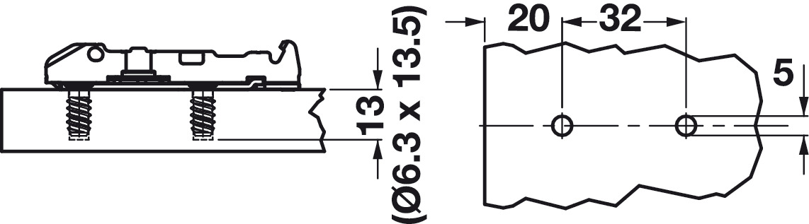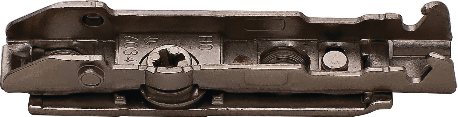 Hafele 348.38.501 Straight Baseplate, Grass Tiomos, Model F059139701228, 2-Point Fixing with Wood Screws, 0" Height