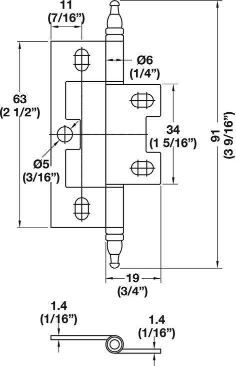 Hafele 351.95.370 Decorative Butt Hinge, Non-Mortised, Minaret Finial, for inset face frame doors, Black