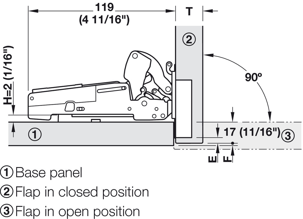 Hafele 365.13.702 Flap Stay Fitting, Salice Pacta, Model C, with automatic closing spring, Set