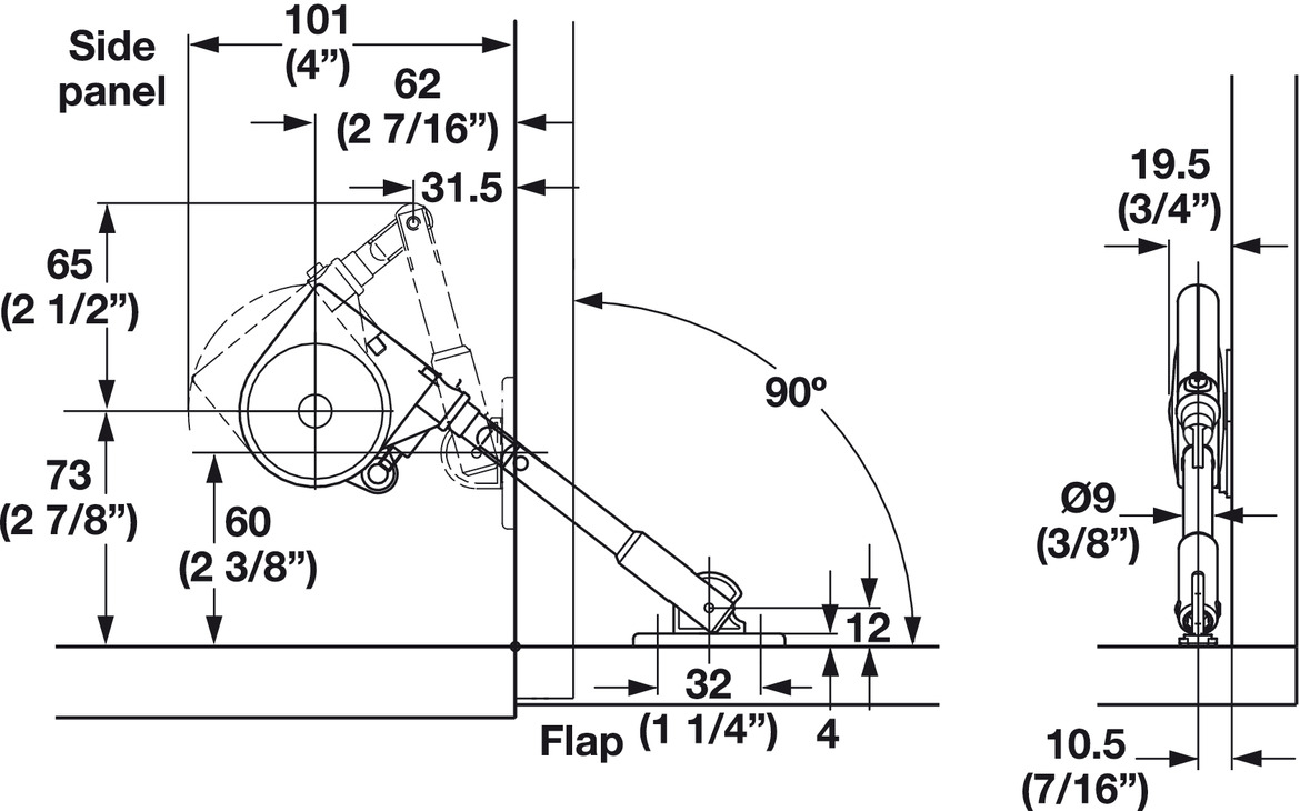 Hafele 365.30.330 Short Arm Flap Stay, Soft Close, Can be Installed Left or Right