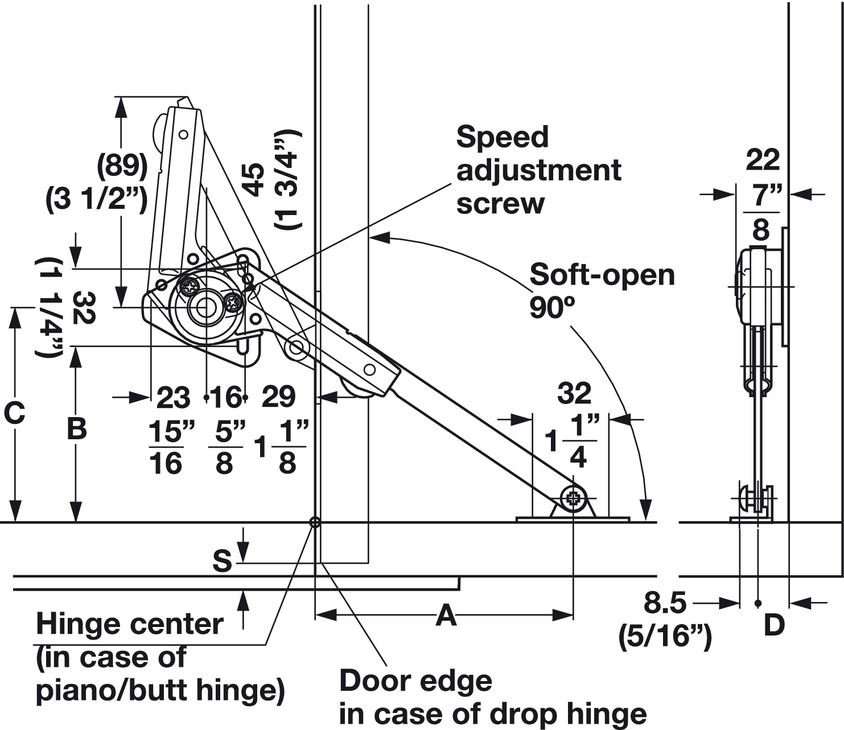 Hafele 365.30.680 Flap Stay, Soft Close, for wooden flaps, Right Handing