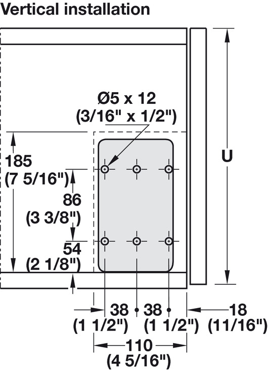 Internal cabinet depth: min. (7-11/16") 196 mm (horizontally), min. (4-5/16") 110 mm (vertically)