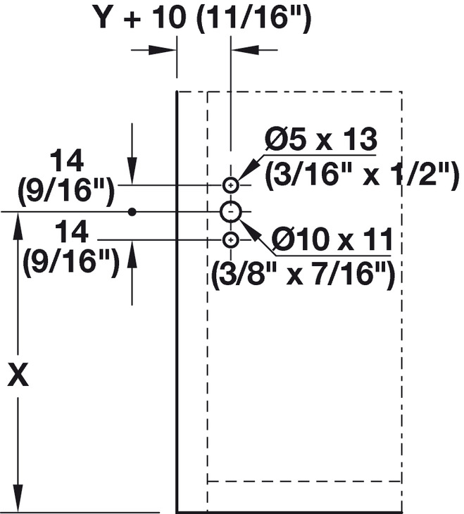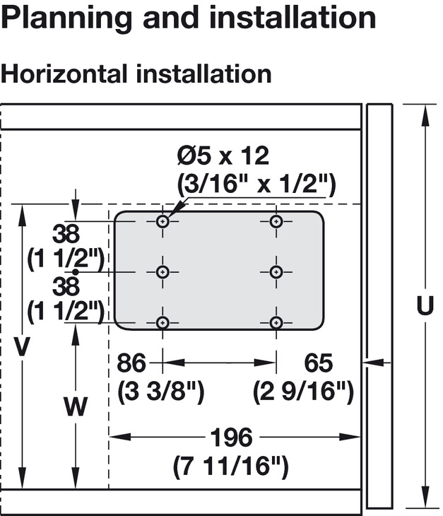Internal cabinet depth: min. (7-11/16") 196 mm (horizontally), min. (4-5/16") 110 mm (vertically)
