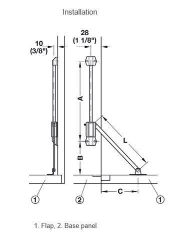 Hafele 365.55.655 Flap Stay, Star Stop with Brake, without Magnet, min. 18" Inside cabinet height, Left Hand