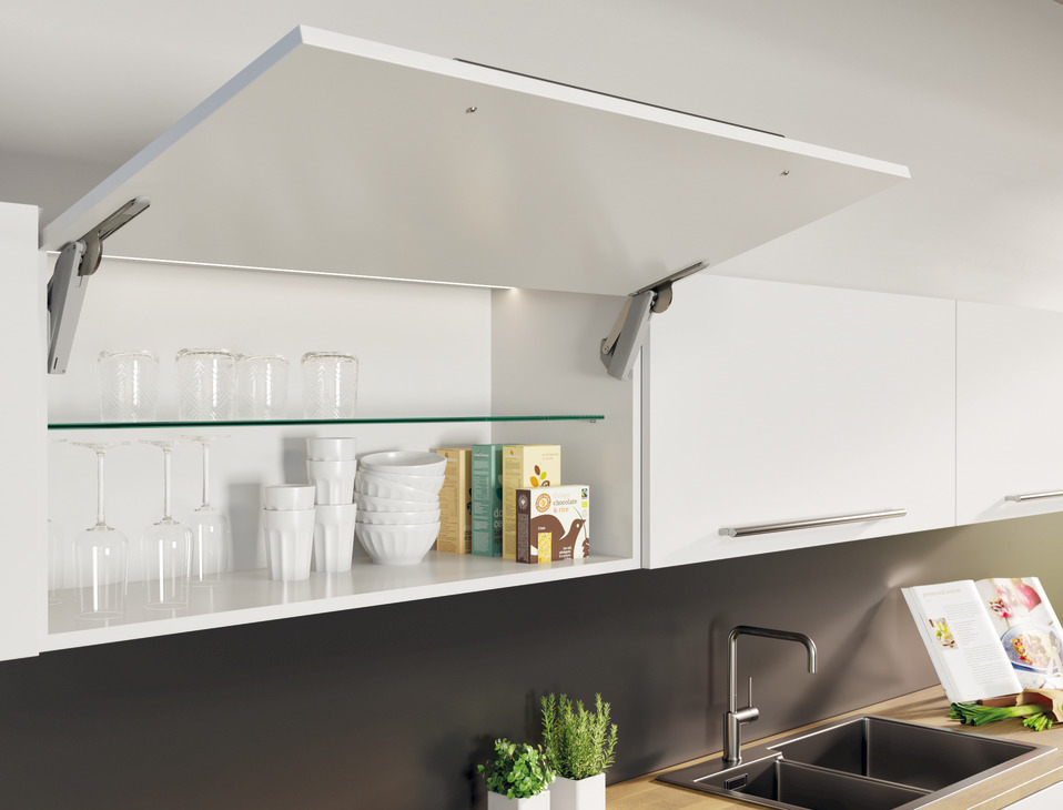 Extremely powerful and versatile: the Free Space series can be used for a much wider range of applications – up to 80% of all flap applications. Extremely compact: modern design and Häfele engineered technology allow for more space inside a cabinet