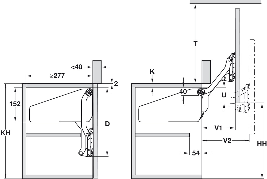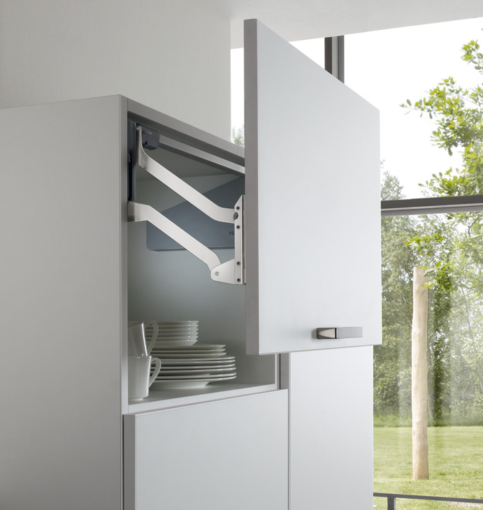 Hafele 372.33.621 Parallel Lift-Up Front Fitting, Free Up, for One-Piece Flaps Made of Wood, Glass or with Aluminum Frame, 380-500 mm (14-15/16" - 19-11/16") Cabinet Height, 2.0-3.8 kg (4.4 - 8.4 lbs) Flap Weight, Set