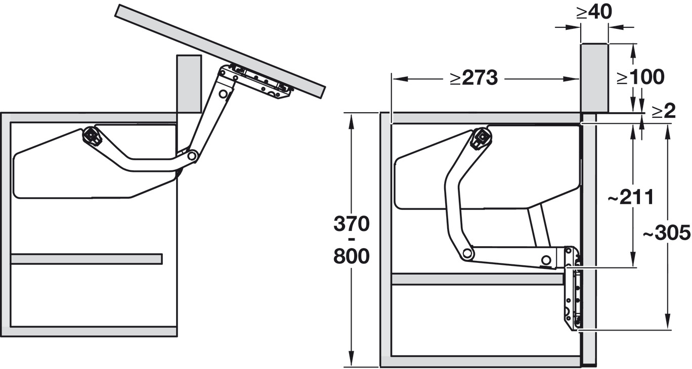 Hafele 372.34.620 Front Lift-Up Fitting, Free Swing, for One-Piece Flaps Made of Wood, Glass or with Aluminum Frame, Model S3sw, 670-800 mm (26-3/8" - 31-1/2") Cabinet Height, 2.9-6.5 kg (6.4 - 14.33 lbs) Flap Weight, Set