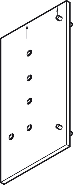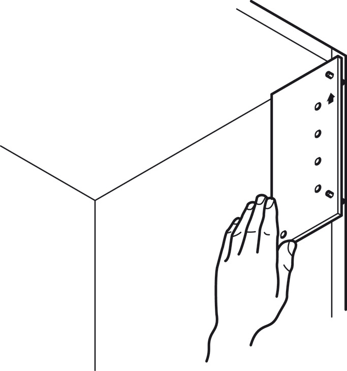 Additional information: Drilling pattern, see installation instructions of the fitting. The drilling jig is positioned directly in the top left or top right cabinet corner.