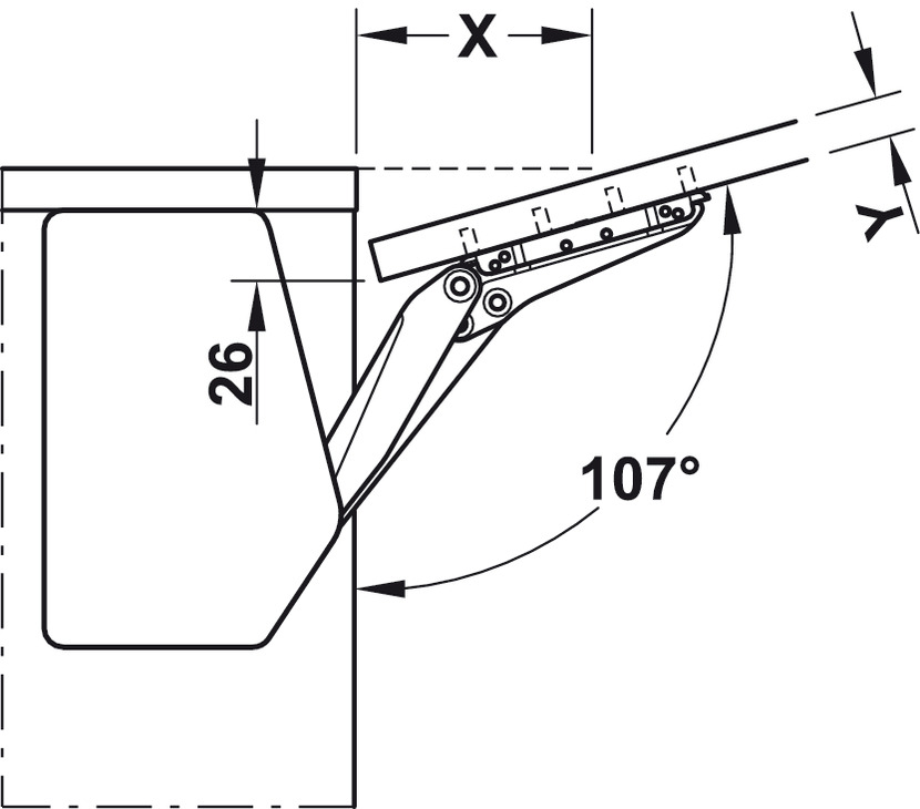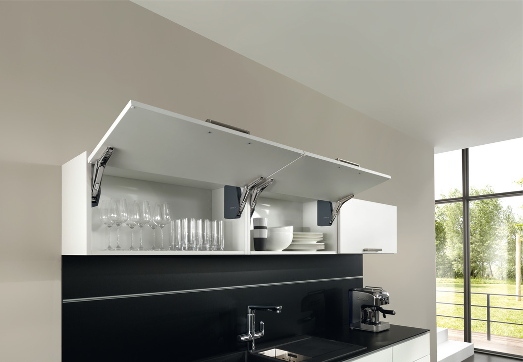 Hafele 372.91.333 Swing-Up Fitting, Free Flap 3.15, Model: G, Steel, Gray Cover Caps, Set