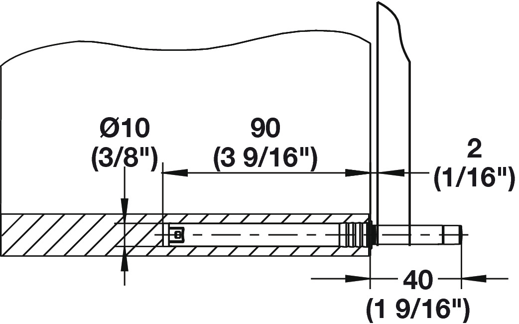 For Mounting In Drilled Hole 10 mm (3/8") x 90 mm (3-9/16") Diameter or sliding onto housing below