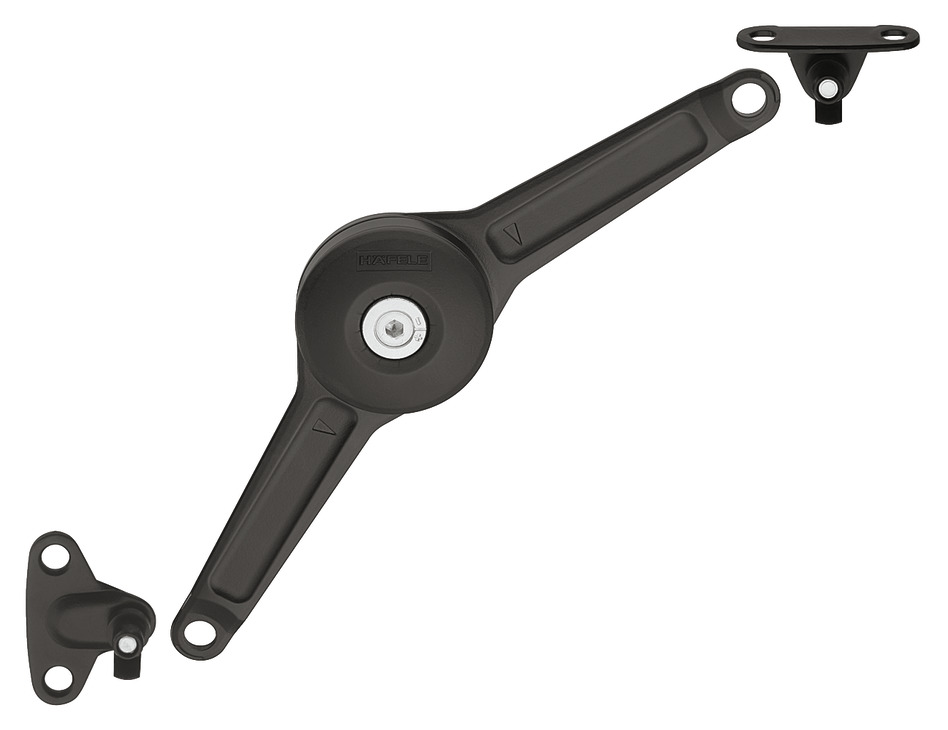 Hafele 373.66.212 Lid Stay/Flap Stay, Häfele Duo Standard, Complete Set, for Wood or Aluminum Framed Doors, for Wood Screws, Steel, Black