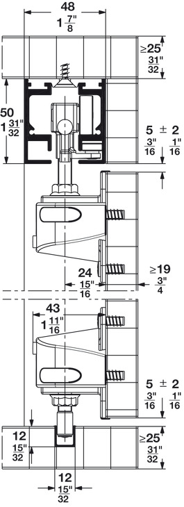 Hafele 400.70.900 Sliding Door Hardware, Parking Area Set, Hawa Aperto 40/F, Infront, for up to 7 Stackable Door Panels, for 1 Parking Area, Plastic/Zinc Alloy, Per Set