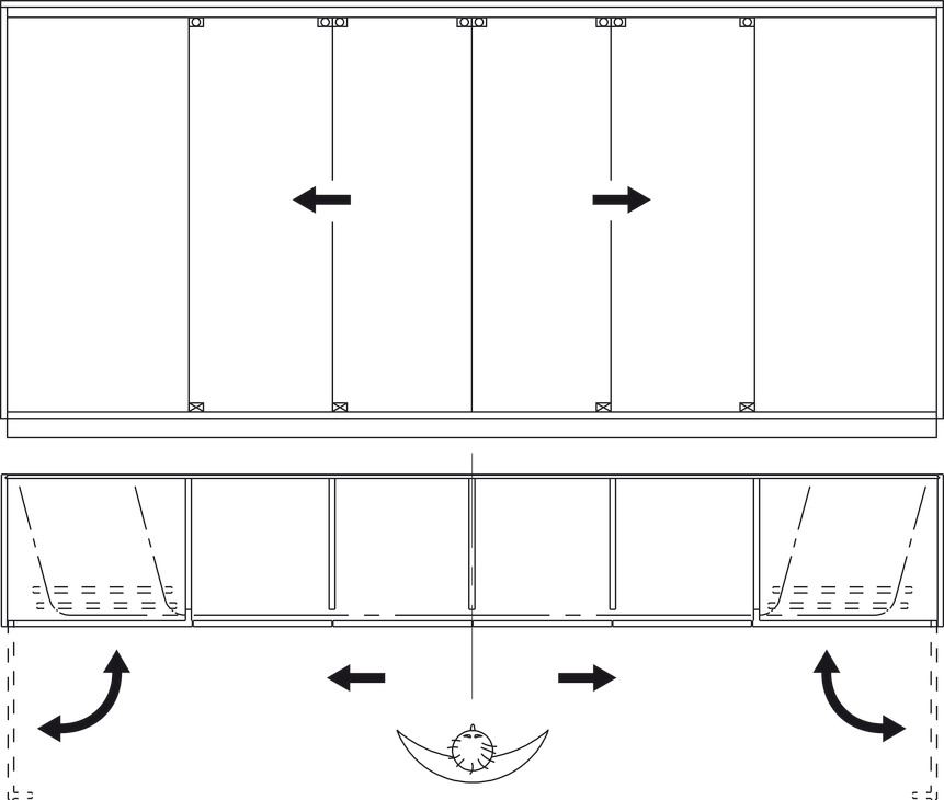 Up to 7 panels can be stored in a parking area on one side of the cabinet