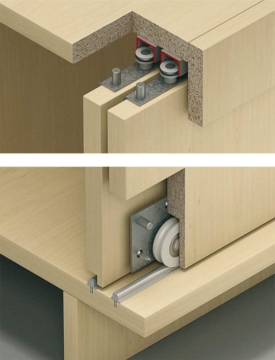 • Separate running and guide tracks eliminate door thickness restrictions