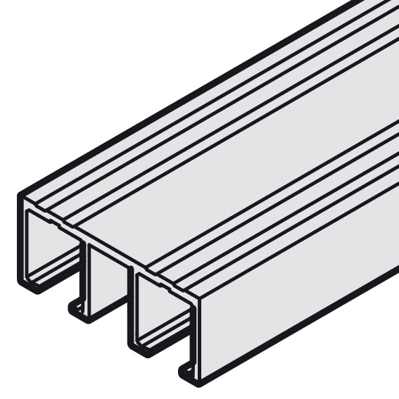 Hafele 402.30.652 Double Top Running Track, For Slido F-Line21, For Screw Fixing, 8' 2 7/16" Length, Aluminum, Silver