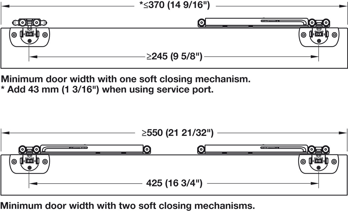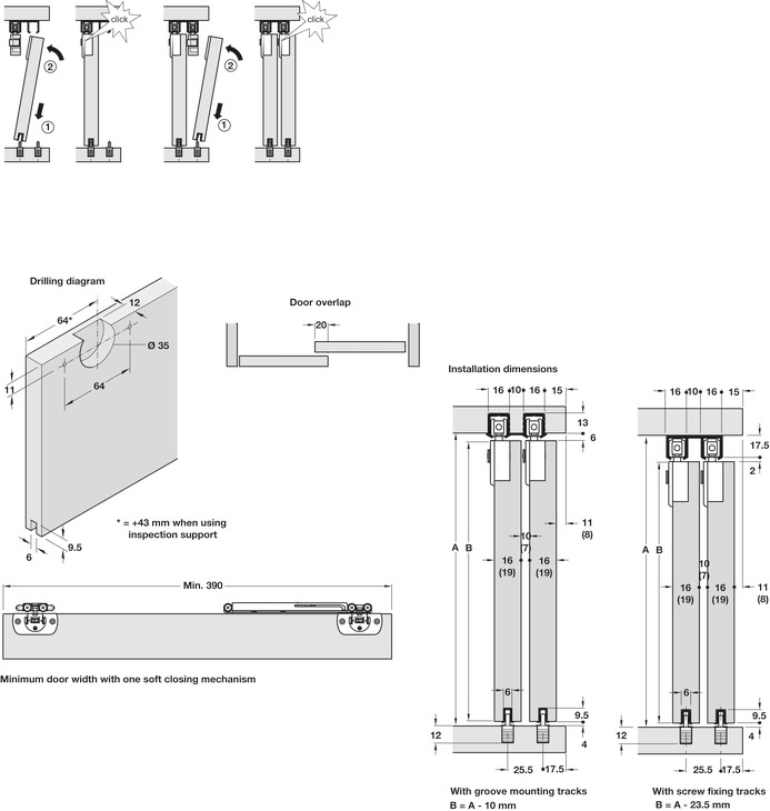 Note on door weight: We recommend that you adhere to the minimum door weight.
