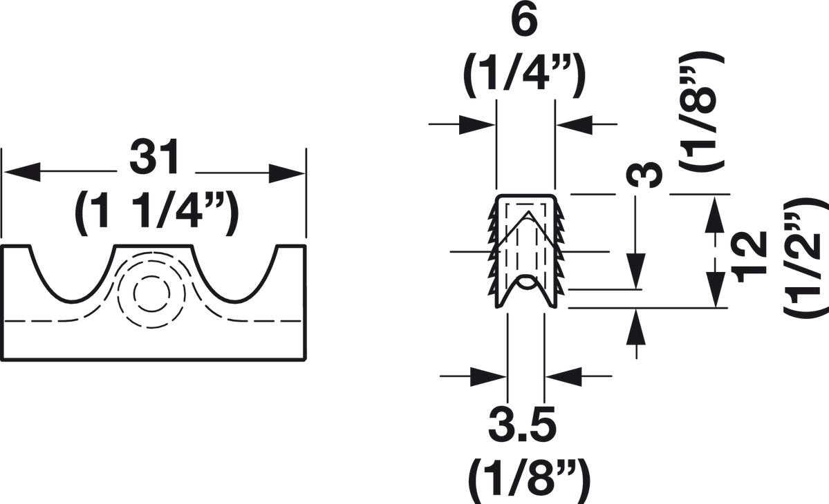Hafele 402.50.002 Glide, For Press Fitting into Groove, 22 lbs Weight Capacity, Plastic, Natural