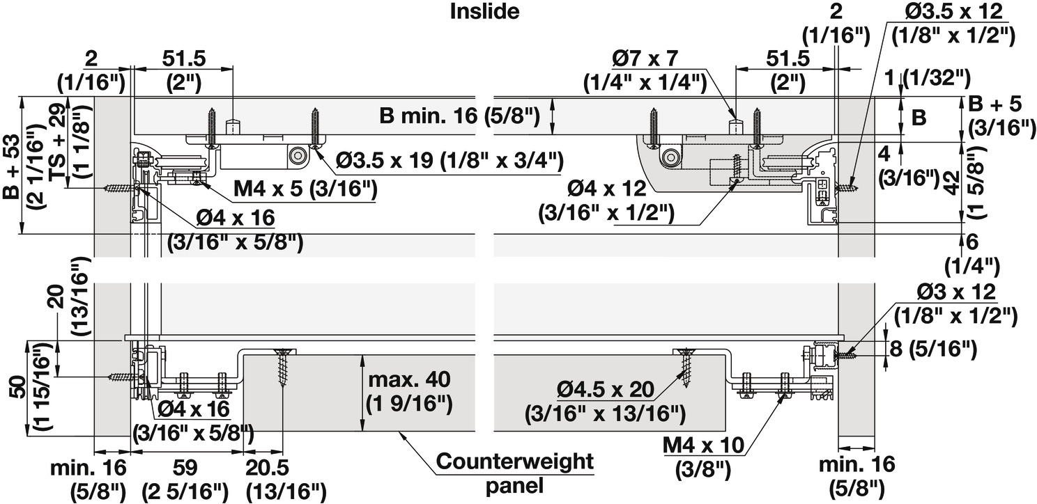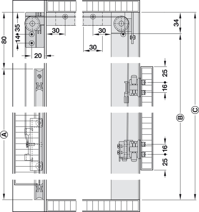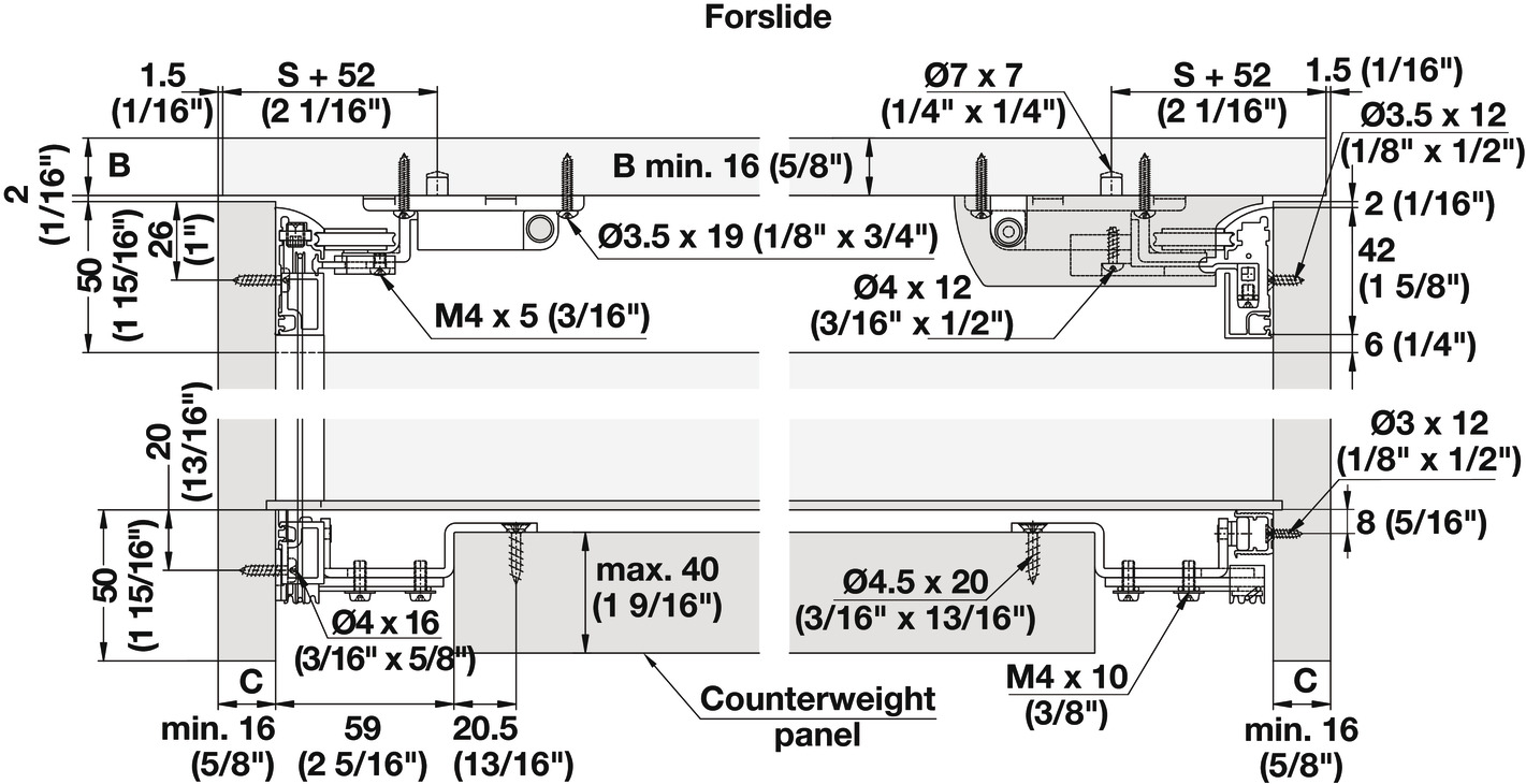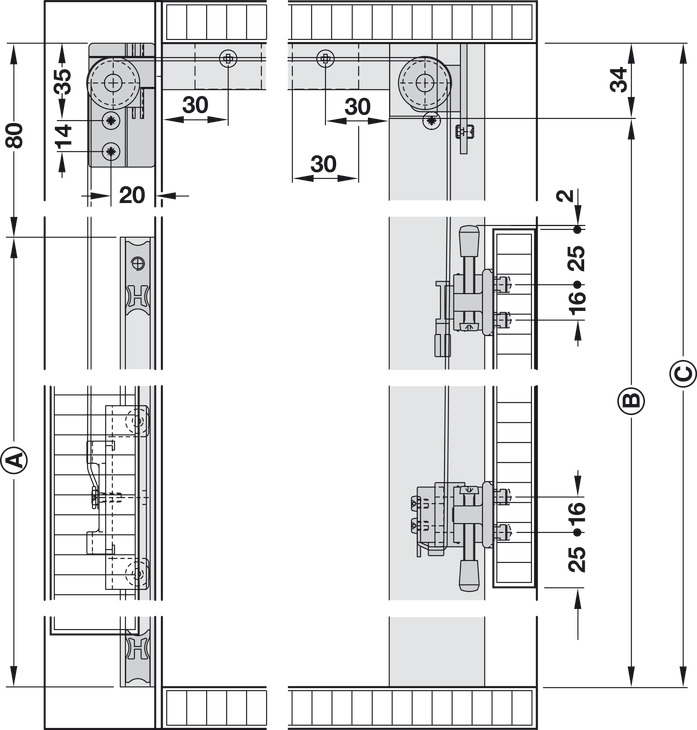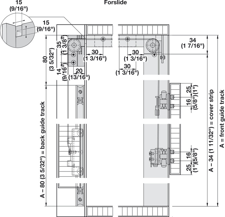 Hafele 403.20.001 Sliding Door Fitting, Hawa Libra 20 Synchro H IF/VF, 44 lbs Weight Capacity, 1 Number of Doors, 63" max. Door Width, Plastic, 1 Set