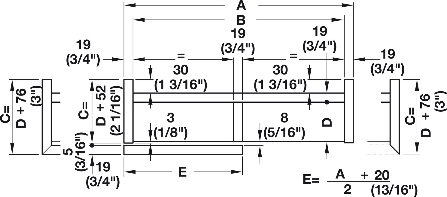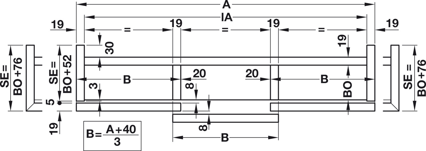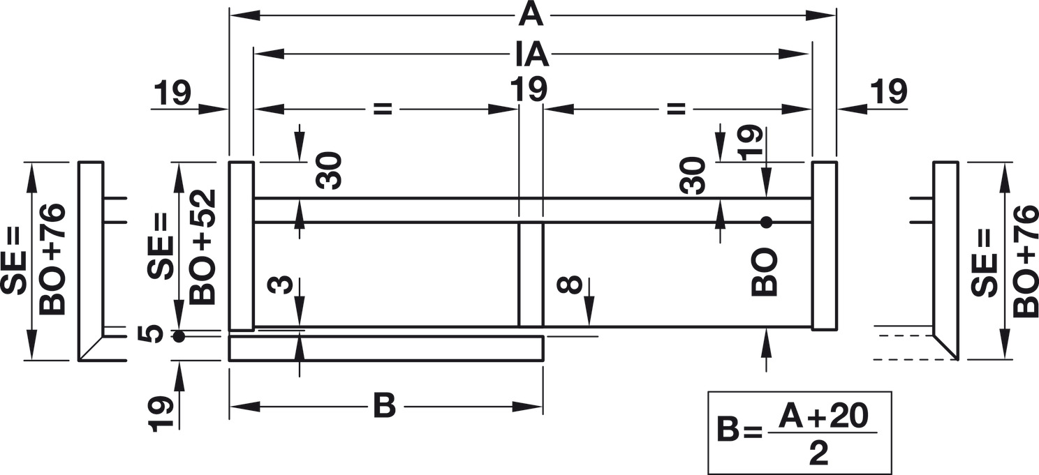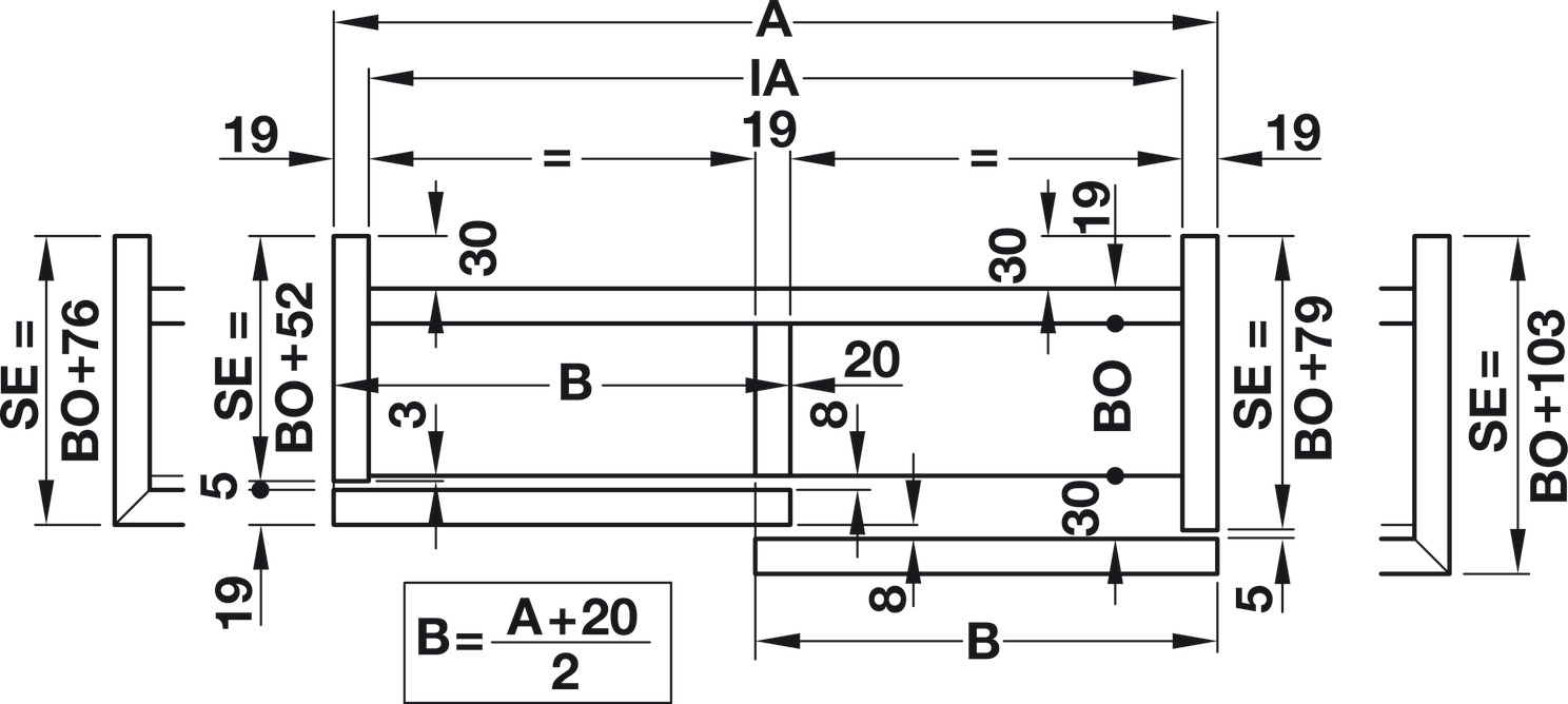 Door heights of 1,500-2,000 mm are only possible in conjunction with soft closing mechanism for sliding doors.