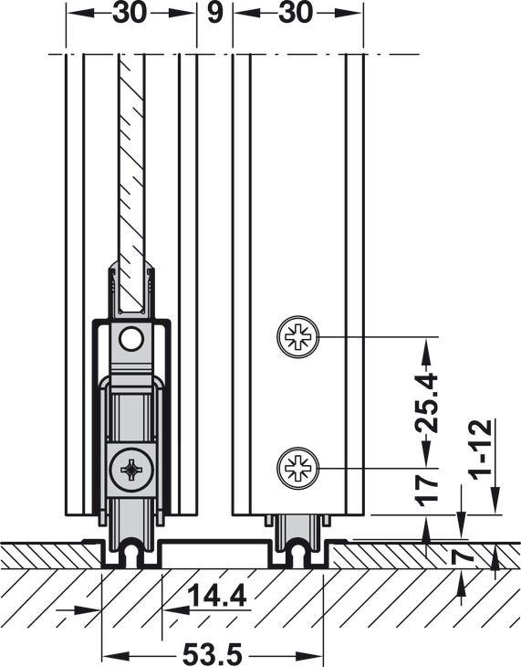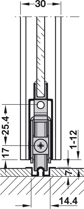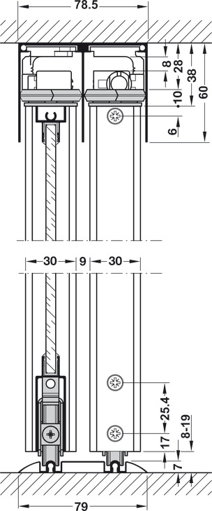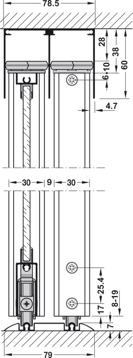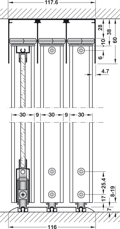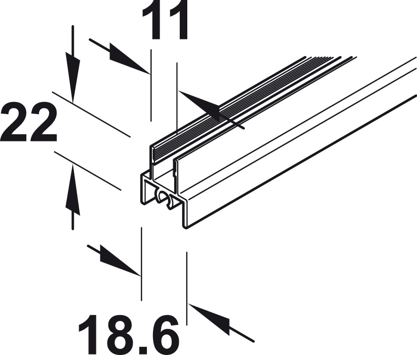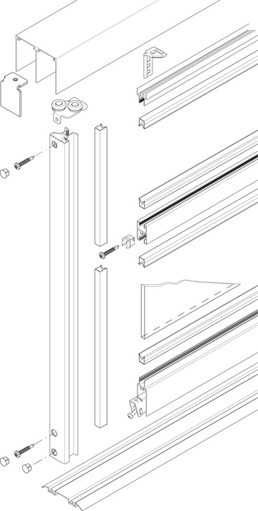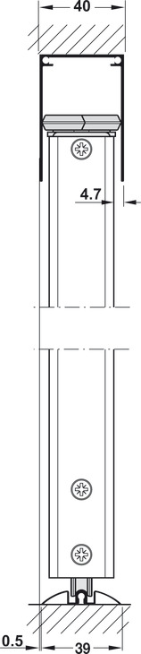 Hafele 403.37.903 Aluminum Top Frame Profile, Silent Aluflex 40, 9' 10 1/8" Length, 19 11/16" - 59 1/16" Door Width, Aluminum, Silver